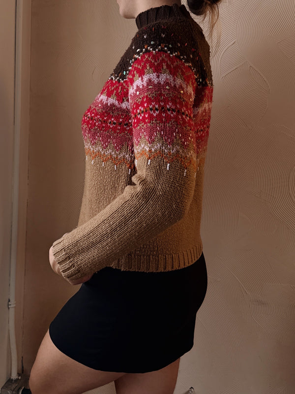 Vintage Beaded Turtleneck Sweater (S)